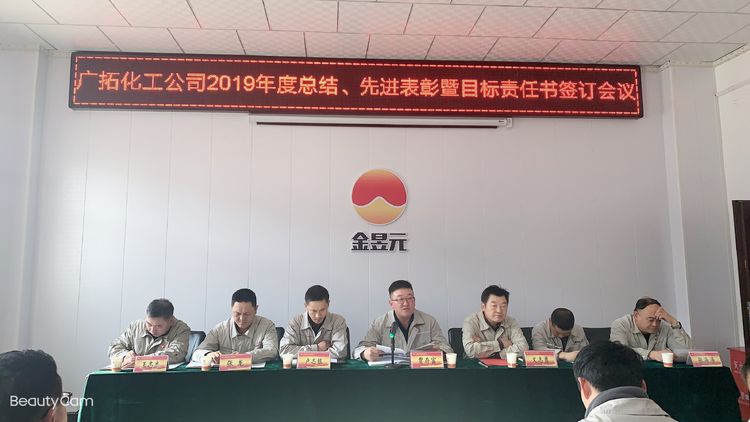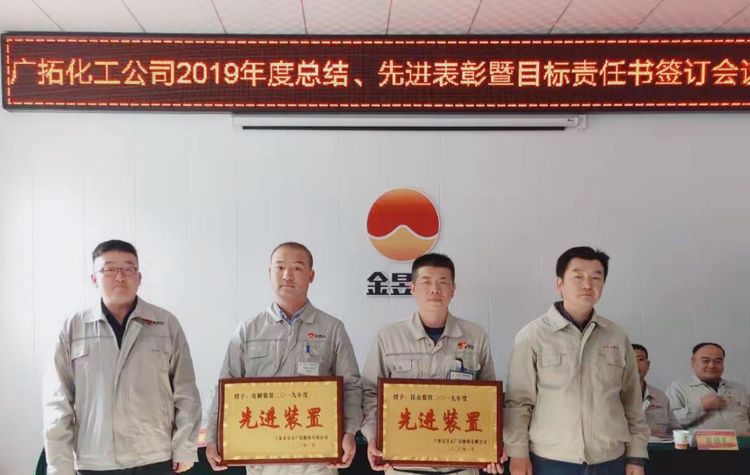 春節(jié)前期,廣拓能源化工公司組織召開(kāi)2019年度工作總結(jié)、先進(jìn)表彰暨目標(biāo)責(zé)任書(shū)簽訂會(huì)議。本次會(huì)議由公司副總經(jīng)理盧志銀主持,化工公司總經(jīng)理、副總經(jīng)理、安全總監(jiān)、副總工程師出席,25名先進(jìn)集體、個(gè)人及70余名職工代表參加。