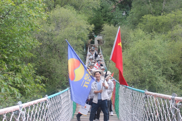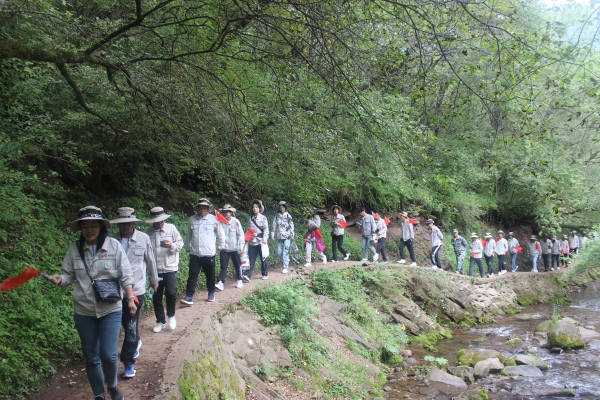 跋涉兩小時后,參訓人員到達六盤山森林公園戶外拓展訓練基地。在基地工會有序組織下,教官將參訓人員分為戰(zhàn)狼隊、雄鷹隊、雄獅隊、飛虎隊、利劍隊五個小隊,在小隊長的帶領下,各參賽小組徒步穿越小南川,參觀六盤山生態(tài)博物館,最終抵達凉殿峽拓展訓練基地。